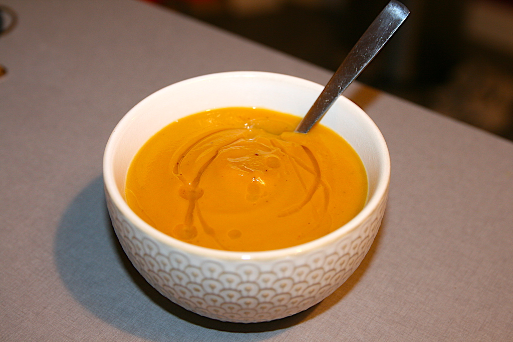Quoi de mieux qu’une bonne soupelette les soirs d’hiver ? La patate douce apporte une superbe texture onctueuse et l’association avec la châtaigne permet d’obtenir un gout très doux et subtile. Le petit bonus : l’huile de noisette (c’est cher !!), qui apporte son petit gout de fruit sec. Et en plus c’est très facile à faire !